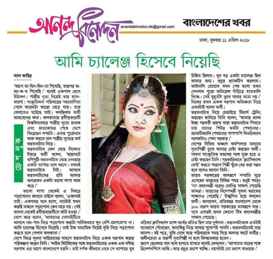 Arthy Ahmed is an internationally acclaimed dancer known for her focus on ethical art practices in dance. She holds a BA Honours and a Master's in Bharatanatyam from India, along with specialized Diploma in dance psychology. After returning to Bangladesh, Arthy shifted her focus towards dance education and initiated the #danceyourage movement, advocating for age-appropriate choreography for children. She currently teaches over 600 students, including children and adult beginners. Arthy has proudly represented Bangladesh on numerous international platforms including representing Shadhona Cultural Circle – A Center for Advancement of South Asian Culture, making significant contributions to the global dance community.